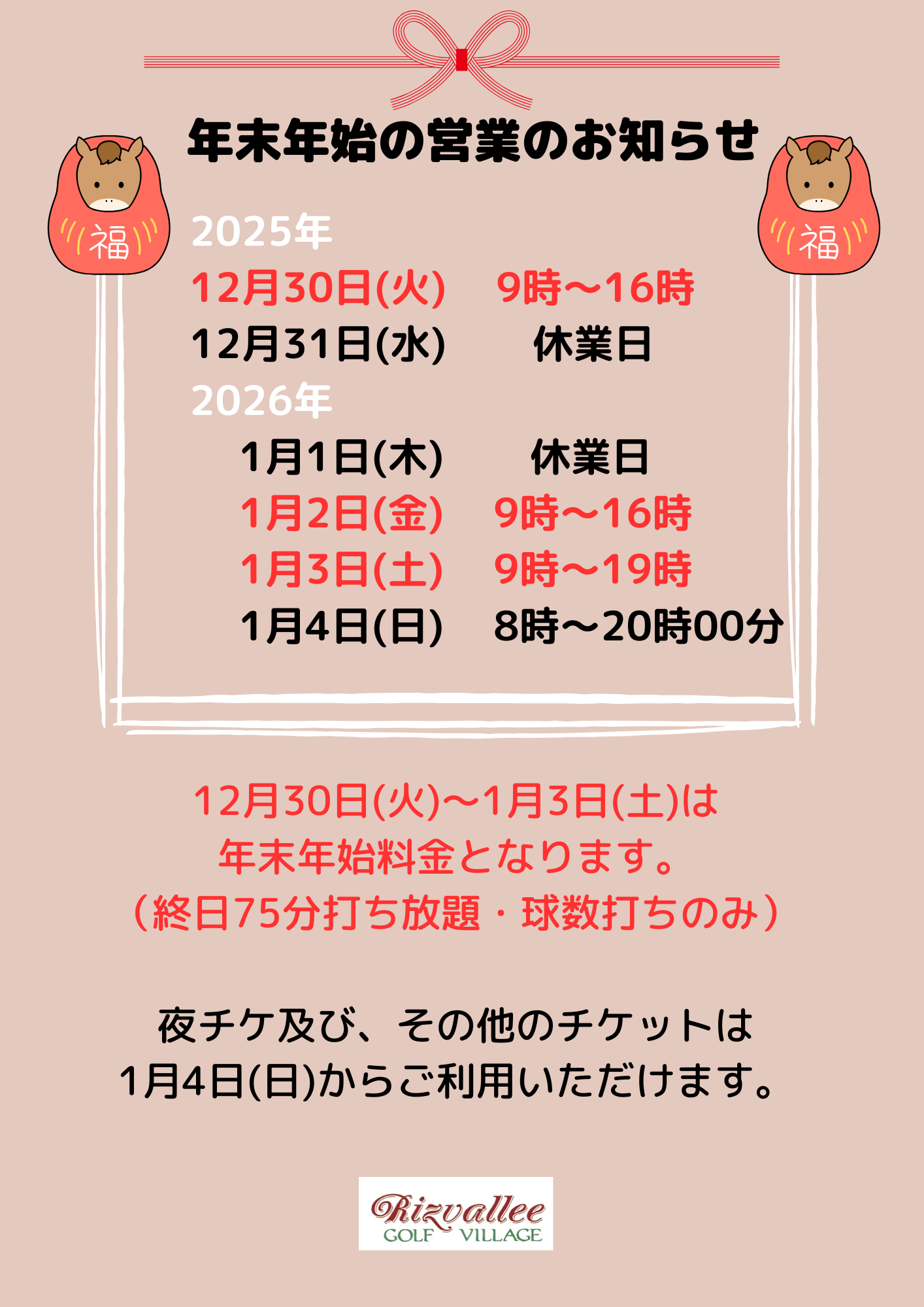 年末年始もたくさんのご来場お待ちしております(^^)/~~~